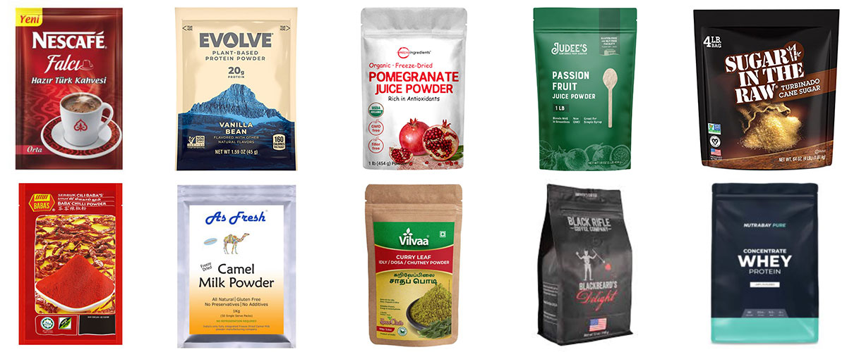 Landpack automatic powder premade pouch doypack packing machine suitable for automatic packing for dry powder, such as milk powder, glucose, monosodium glutamate, seasoning, protein powder, washing powder, chemical materials, fine white sugar, pesticide, fertilizer, etc.